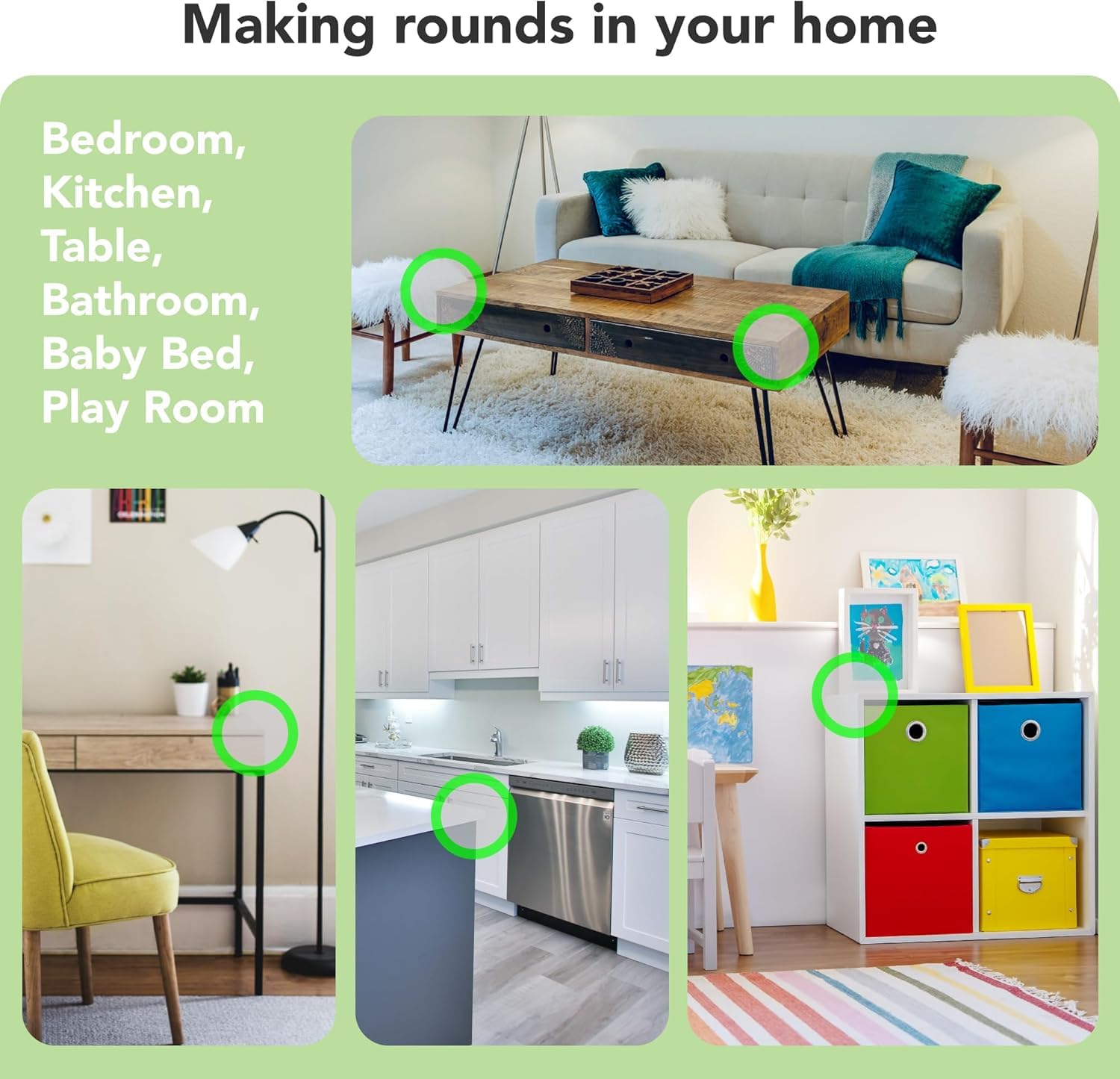 Transparent corner protectors to baby-proof sharp furniture edges. Soft, cushioned, and easy to install with strong pre-applied adhesive.