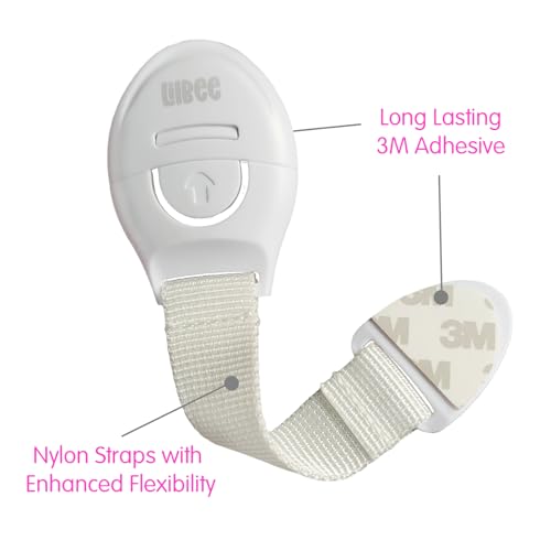 ✅Lilbee Furniture Safety Locks (Pack of 10) – Strong Adhesive Child Safety Locks for Cabinets, Drawers, Fridge & Cupboards – White