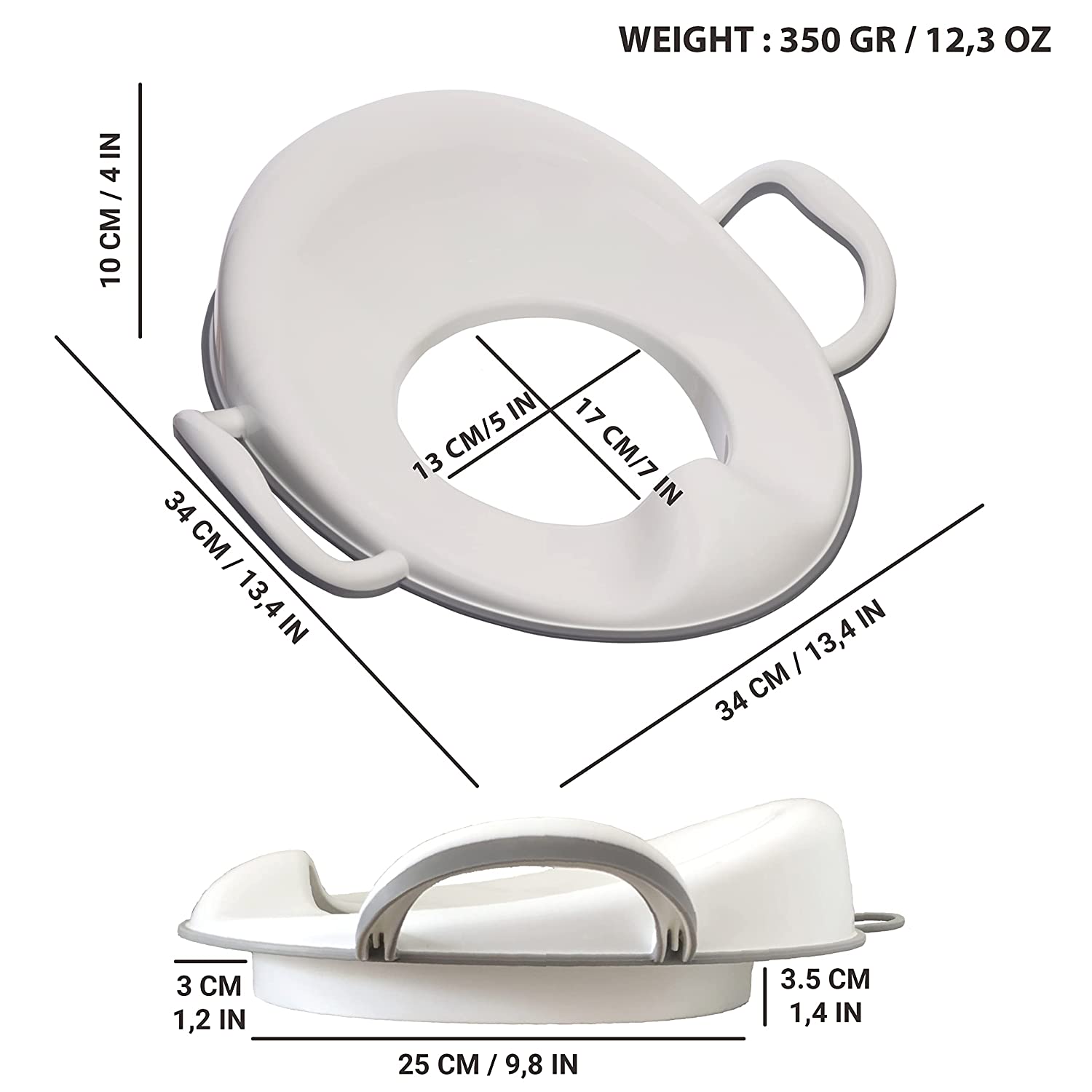 🌟Comfortable and safe potty training seat designed for toddlers. Non-slip base, supportive handles and a splash guard for a clean experience.